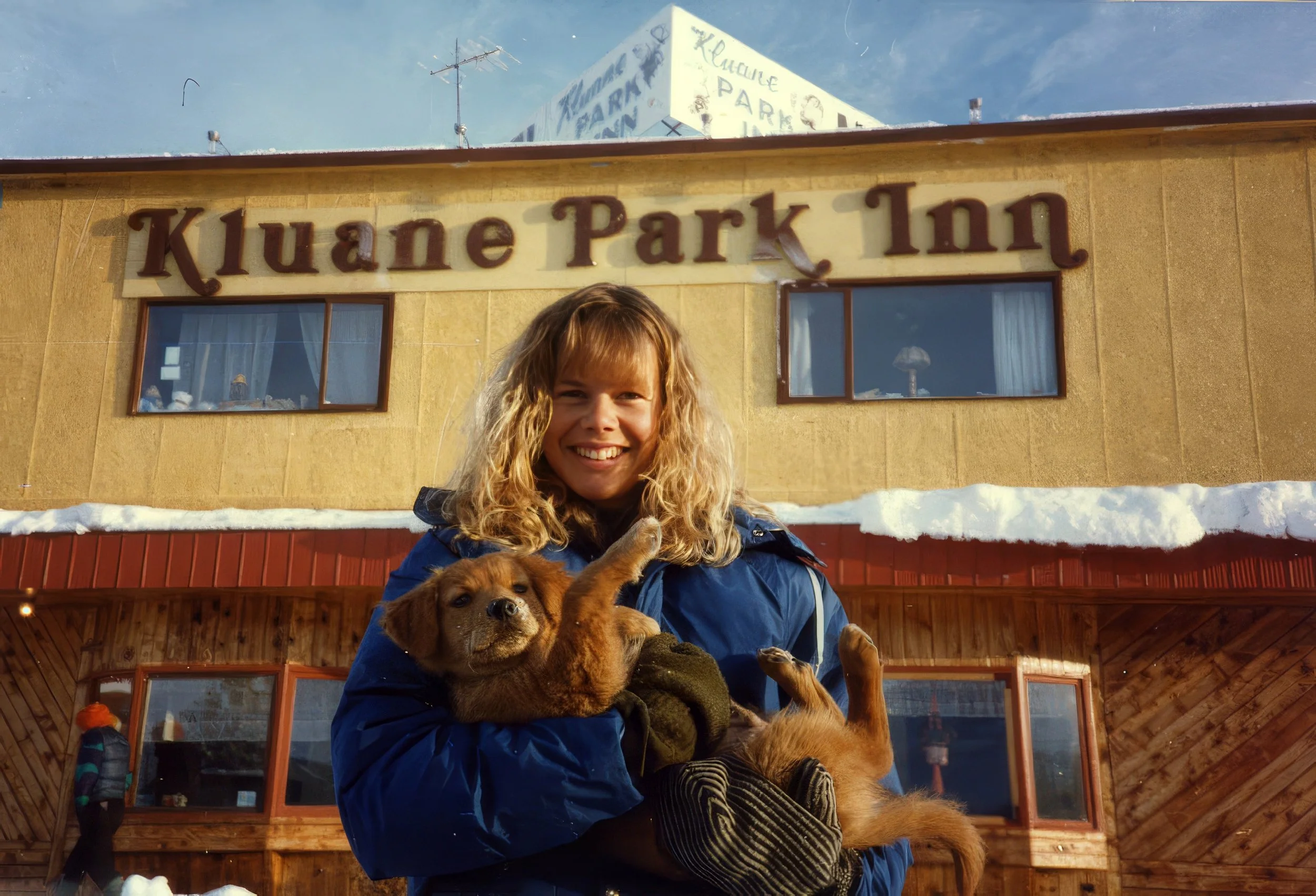 Janet and Sam in Destruction Bay, Yukon. January 1989.